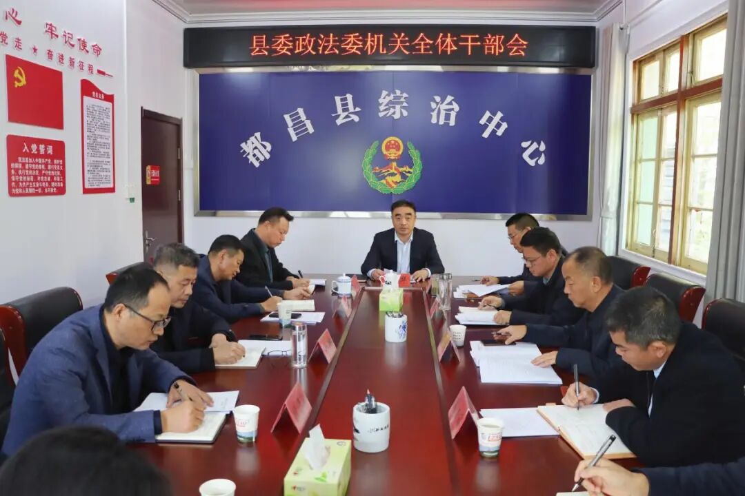 10月27日上午,县委常委、政法委书记段新华主持召开机关全体干部会议,专题传达学习贯彻党的二十届四中全会精神和全省、全市、全县领导干部会议精神,研究部署县委政法委学习宣传和贯彻落实工作。