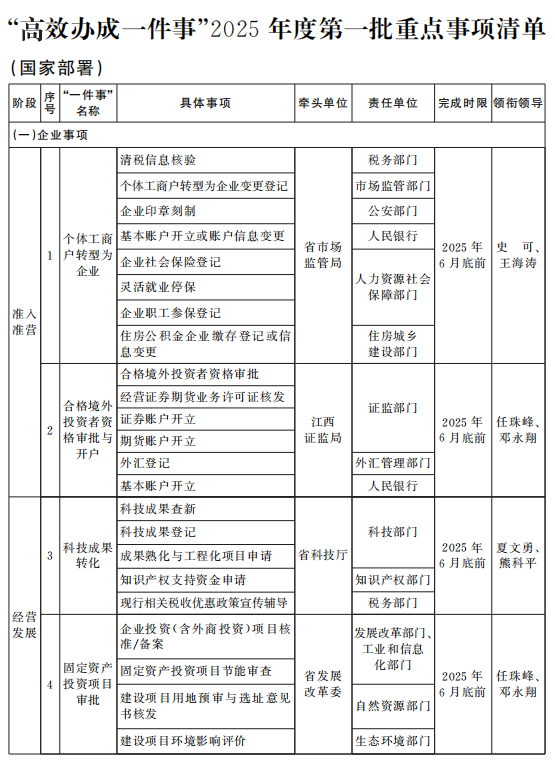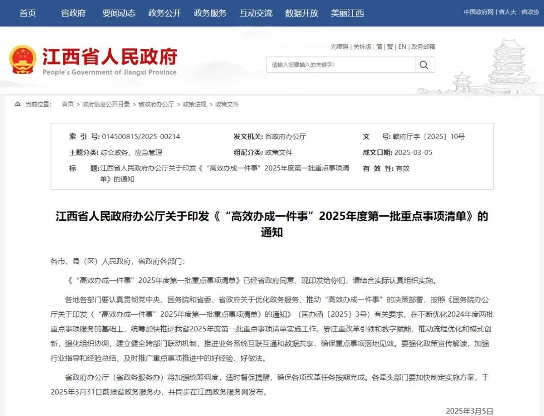 江西省人民政府办公厅关于印发《“高效办成一件事”2025年度第一批重点事项清单》的通知