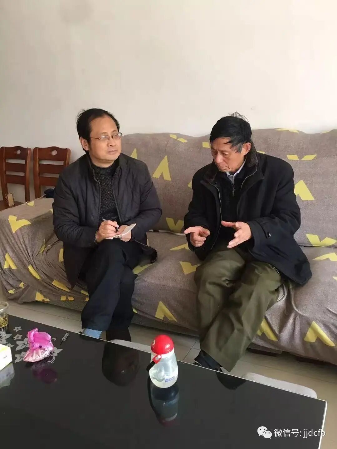 2018年底本文作者(左)采访李伯农侄孙李玉凡