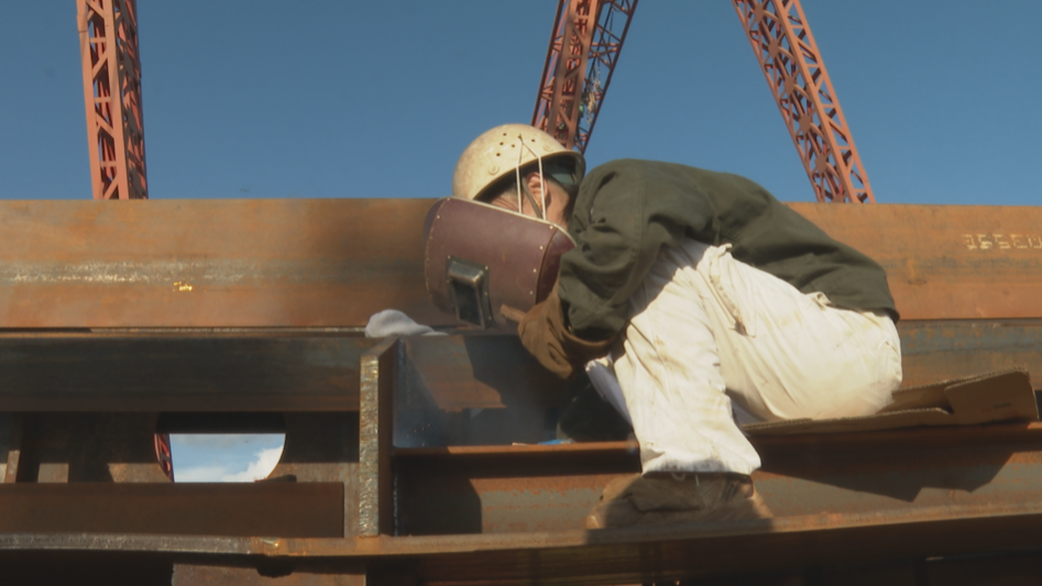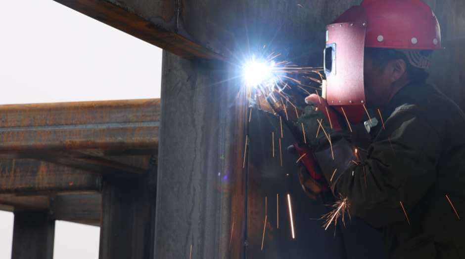 虽然立秋已过,但室外气温依旧维持在35摄氏度左右。今年46岁的曹新云是一名熟练的电焊工,她告诉记者,按照电焊作业要求,不管天气多炎热,工作的时候,为了避免电焊的弧光和火花造成烫伤,工人必须“全副武装”:头戴防尘面罩,身穿工作服,搭配手套,脚穿橡胶鞋。