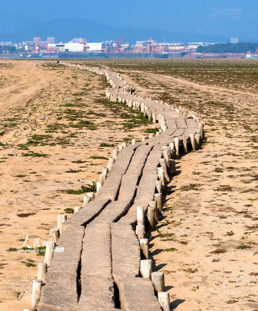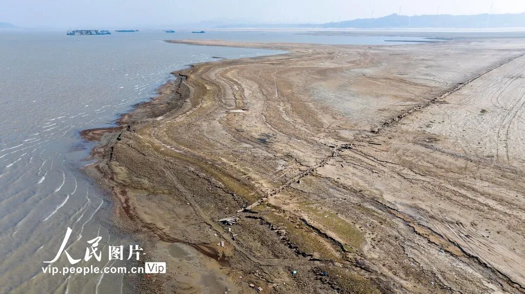 近日,位于都昌县多宝乡的鄱阳湖进入枯水期,水位下降,湖底古代石桥露出水面。据了解,该桥是江西省重点保护文物,修建于明朝,曾是两岸沿湖群众往来交通便道。