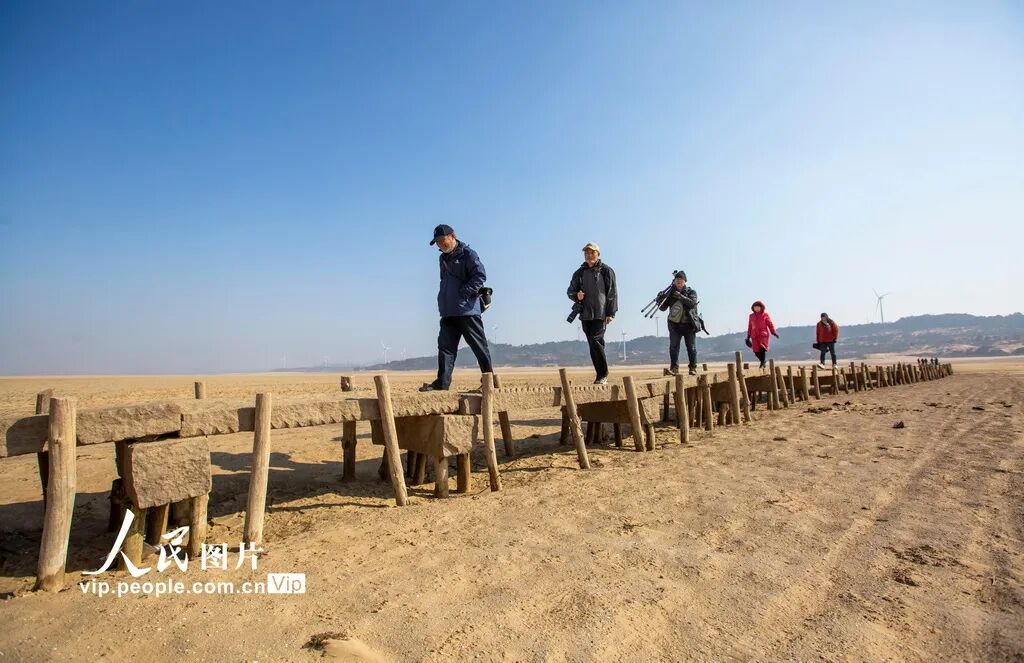 2024年12月14日,拍摄的位于鄱阳湖底的古代石桥