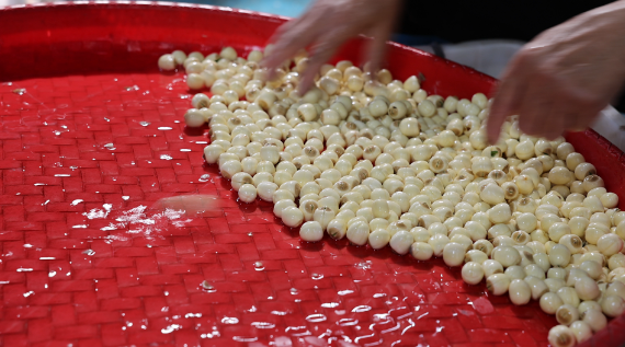 徐埠镇山峰村委会副主任袁金和说:“我们亩产量大约是800到1000斤,我们年产烘干莲子产量达2至3万斤。目前我们的销售是以三个平台为主,主要是以大规模的批发市场,然后我们还有兼顾网络销售和零售。”