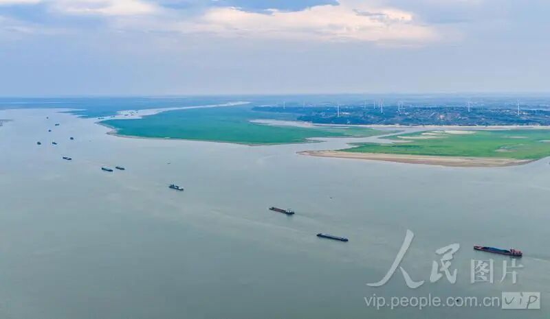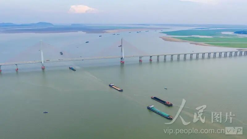 2025年9月4日,江西省九江市都昌县老爷庙水域,鄱阳湖上货运船舶往来穿梭,呈现一派繁忙景象。