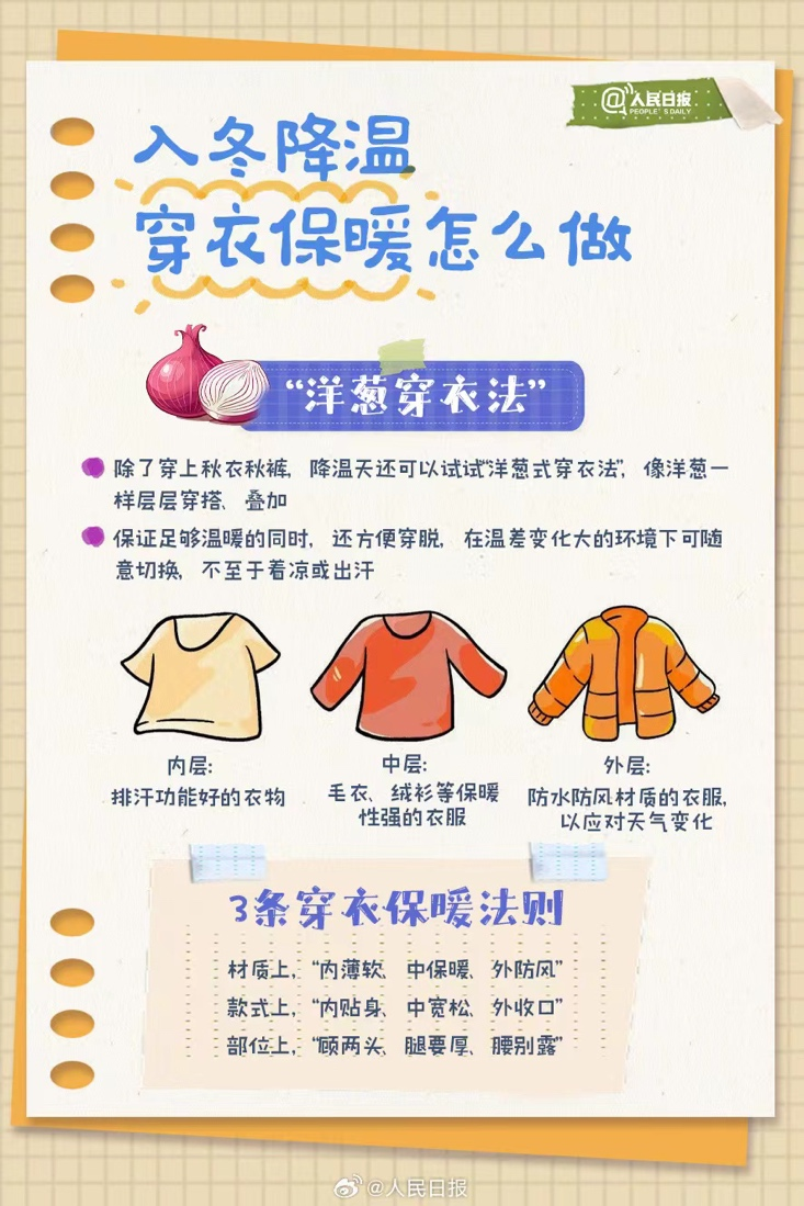 岁暮天寒,出入慎添衣!冬季保健,及时增减衣物是预防疾病的第一道防线,快来学习实用的洋葱穿搭公式!
