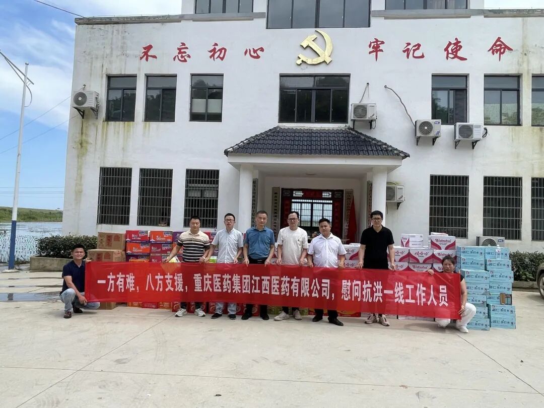 一方有难,八方支援。7月6日,重庆医药集团江西医药有限公司一行人深入周溪镇,看望慰问防汛抗洪一线人员,现场捐赠1.5万元爱心物资,以实际行动支持防汛抗洪工作。 在枭阳圩堤等地,重庆医药集团江西医药有限公司一行人分别将矿泉水、八宝粥、饼干、牛奶、方便面、面包等爱心物资,送到防汛抗洪的干部群众手中。一箱箱爱心物资,承载的是责任和担当,传递的是大爱和温暖。 “我们了解到都昌这边的灾情情况以后,公司领导经过开会以后,立即派我们过来采购物资,慰问抗洪人员。我们希望能对都昌县的抗洪救灾尽微薄之力。”重庆医药集团江西医药有限公司总经理刘晨说道。 为支援都昌的防汛抗洪工作,重庆医药集团江西医药有限公司第一时间在微信群发起倡议,公司员工积极捐款捐物。同时,重庆医药集团江西医药有限公司还积极倡导各分公司员工捐款捐物,全力做好后勤保障服务,以实际行动支持防汛抗洪、保护美丽家园。 重庆医药集团江西医药有限公司九江分公司总经理张育森表示,他是都昌在外的务工人员,这次看到都昌发了洪水,就代表九江医药分公司表示一点点小小心意。抗洪人员非常辛苦,自己只能尽一份力量。