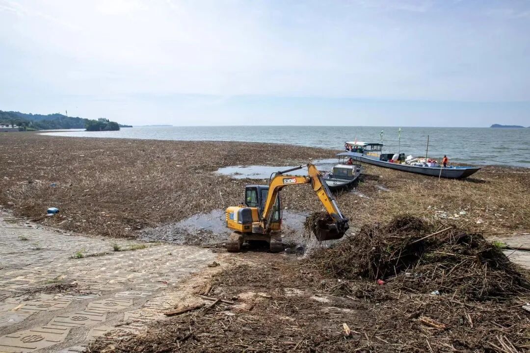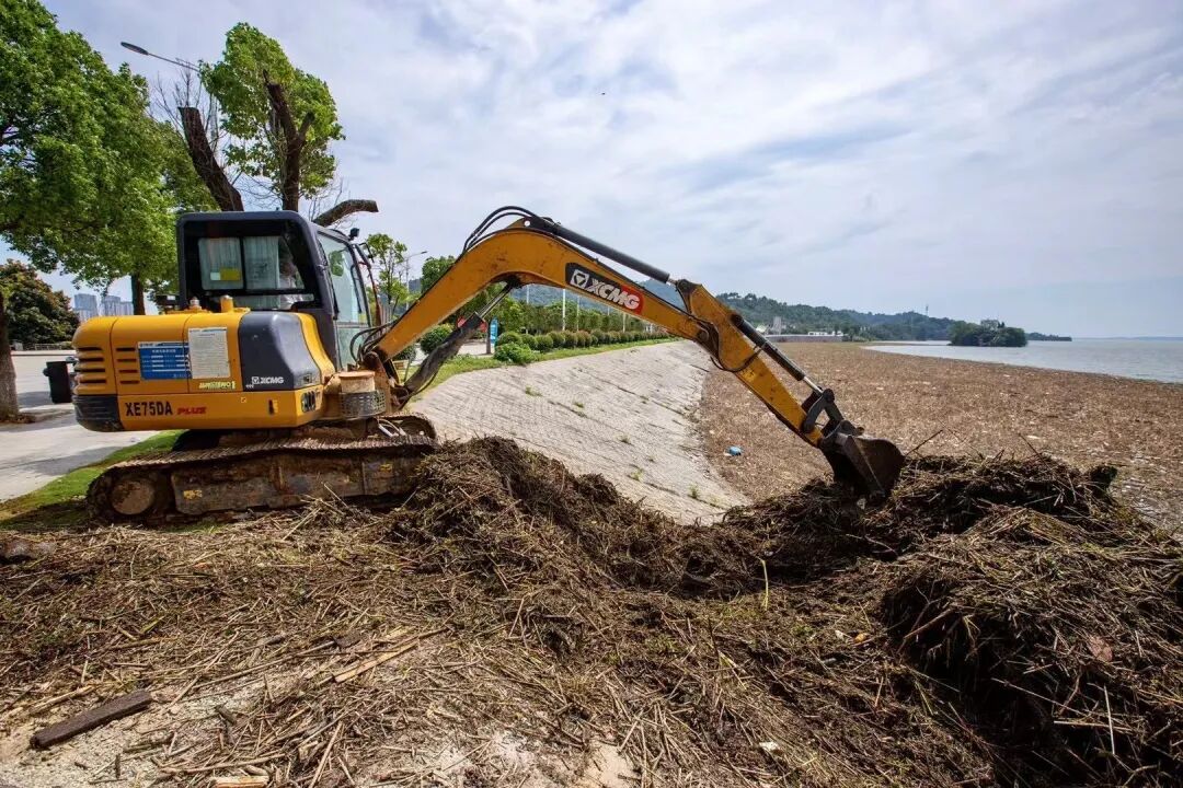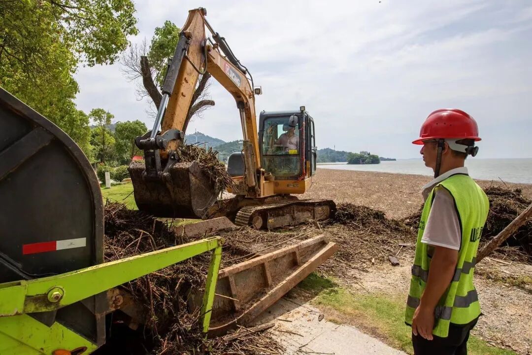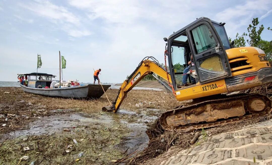 受鄱阳湖高水位运行等多重因素影响,在鄱阳湖都昌印山、新体育馆码头等水域,树枝、垃圾等漂浮物明显增多。为此,都昌县中峰环境产业有限公司组织专业人员,全力以赴,全方位清理湖面漂浮物,努力呵护一湖清水。7月6日,在清理现场,都昌县中峰环境产业有限公司正通过两艘船只配合作业,一台挖机在岸边挥舞着机械臂,将水域中漂浮的芦苇秆、塑料瓶等垃圾,运送至自动压缩垃圾车上,然后转运至垃圾中转站进行处理。相关负责人介绍,受南风压制等因素影响,上游漂浮物源源不断漂往我县境内湖面。都昌县中峰环境产业有限公司正全力组织人员开展漂浮物集中清理,日清理量可达40吨。“都昌县委、县政府高度重视这件事情,我们作为从事环卫的企业,应该要尽一点心力。我们主要采取笨办法,用两条船在外面,用网把那个垃圾往这边赶;然后请一台钩机在这个岸上把芦苇草和垃圾全部往上面捞,捞上来以后再用垃圾压缩车运走。”都昌县中峰环境产业有限公司总经理曹薇说道。都昌是滨湖大县,24个乡镇中21个临湖;拥有鄱阳湖1/3水域,湖岸线长达308公里。目前,都昌县中峰环境产业有限公司已完成鄱阳湖水域沿岸2000吨漂浮垃圾的清理。下一步,都昌县中峰环境产业有限公司还将进一步加大人力物力和设备投入,努力保护湖区生态环境,呵护一湖清水。