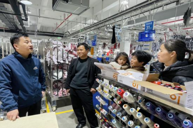 富德士服装、瑞达飞制衣等企业还在厂区内设专场招聘,引领求职者实地参观,直观了解工作环境,让求职更透明、入职更安心。同时增设兼顾工作与育儿的“生育友好岗”,贴心吸纳抚养12周岁以下子女的女性就近就业。35岁的吴小红需接送两个孩子,难以兼顾全职工作,富德士主动为其对接“妈妈岗”,待报名人数达标后将专门开设专线、灵活安排工时,真正实现顾家、增收两不误。